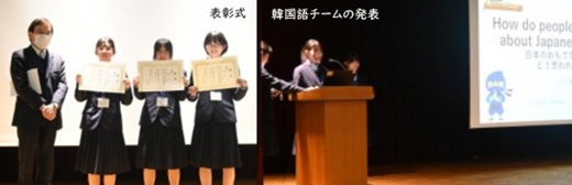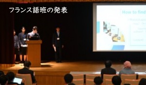 - 3月11日(水)に長崎外国語大学にて、文理探究科1年生が研修成果発表会を行いました。フランス語、中国語、ドイツ語、韓国語の4つの言語に分かれ、日本と各国の言語や文化の違いについて約半年をかけて研究した成果を発表しました。また、今年度から各言語の発音コンテストも実施し、流暢な発音を競い合いました。研修を通して、テーマや仮説設定の仕方やデータ分析、スライド作りのポイントなどを学ぶことができました。いずれの班も次年度からの探究活動への意欲が高まったようでした。