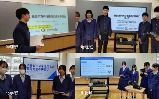 - 最後まで試行錯誤を繰り返し、粘り強く取り組んだ研究成果が実を結んだことでそれぞれの発表者たちの自信になったようです。また、発表見学に参加した2年生も他校の高校生との交流を通し、これからの研究に対する意欲が高まったようです。